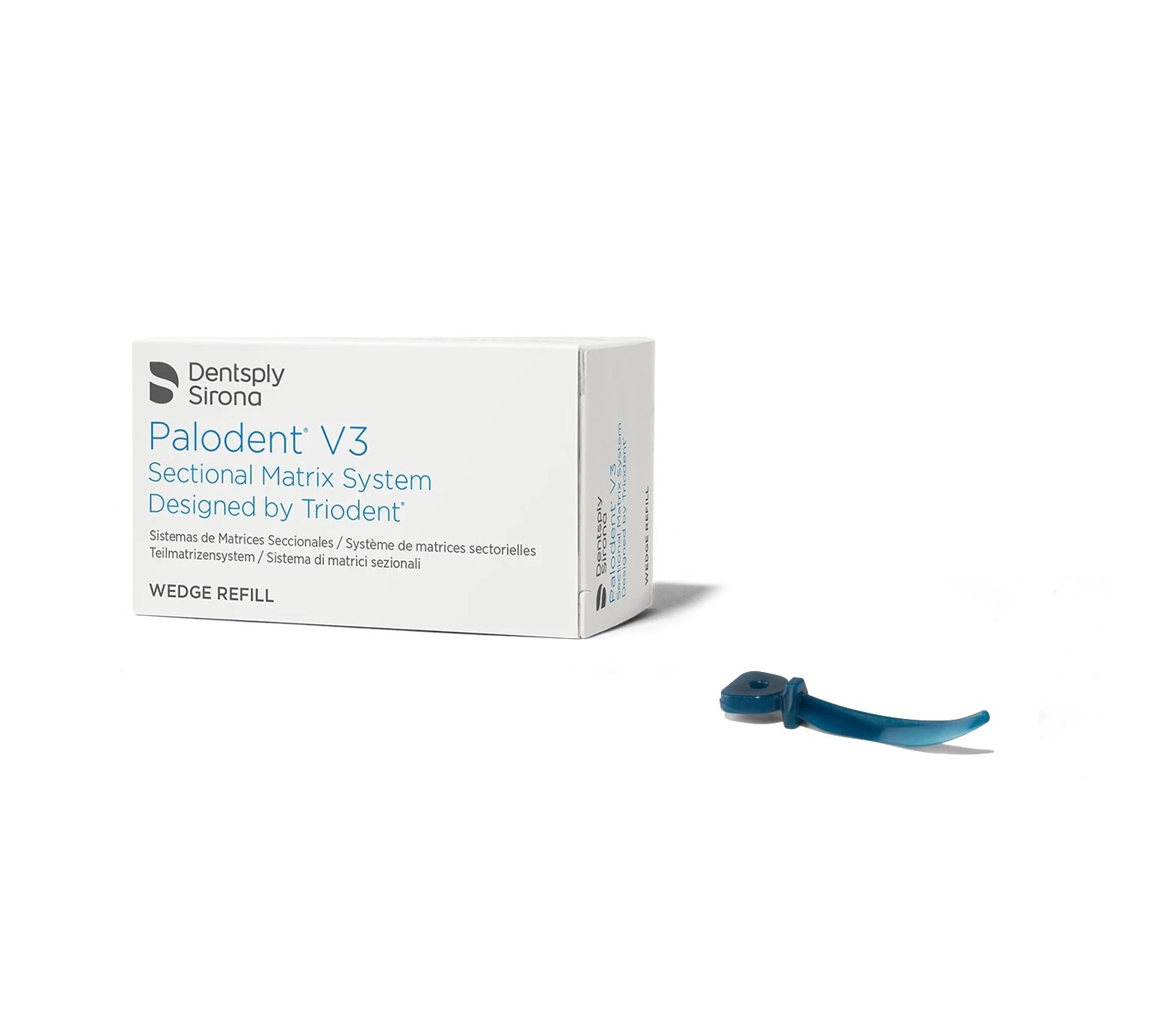 Kliny elastyczne z tworzywa sztucznego. Przeznaczone do: - separacji zębów, - uszczelnienia matrycy stosowanej przy odbudowie punktu stycznego. Ramiona klinów rozszerzają się i zwężają podczas zakładania, co umożliwia dokładne przyleganie do zęba. Unikalny kształt umożliwia w trakcie zabiegu umieszczenie dodatkowego klina od strony przeciwnej. uzupełnienie: 100 klinów w rozmiarze Small, ciemnoniebieskie