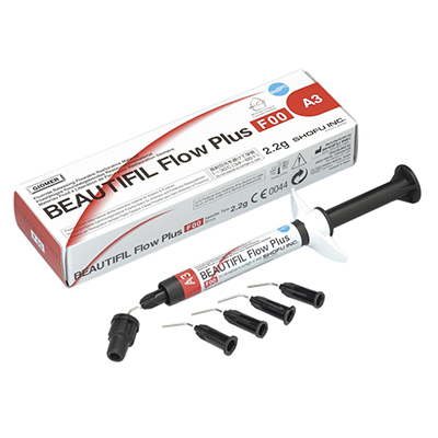 Beautifil Flow Plus F00 - płynny, hybrydowy kompozyt do odbudowy zębów przednich i bocznych. Jest całkowicie stabilny i nie spływa po aplikacji z powierzchni, przez co doskonale nadaje się do odbudowy guzków lub ścian ubytku z wolnej ręki. Poszerza możliwości techniki pracy, umożliwiając w prosty sposób odtworzenie prawidłowej anatomii zęba oraz powierzchni żującej. Bardzo dobrze adaptuje się do ścian ubytku oraz ulega samopoziomowaniu - nie wymaga „układania” go w ubytku, co znacznie skraca czas pracy. Zapewnia dokładną szczelność brzeżną oraz uzyskanie wysoce estetycznych i naturalnych efektów. Uwalnia i pobiera fluor oraz jest odporny na kolonizację bakterii, co jest wyjątkowo korzystne dla pacjentów z wysokim ryzykiem próchnicy. Jest bardzo dobrze widoczny w obrazie RTG. Strzykawkowe opakowanie i końcówki z cienką kaniulą pozwalają na aplikację materiału wolnego od pęcherzyków powietrza bezpośrednio do ubytku. opakowanie: strzykawka 2,2g w odcieniu A3