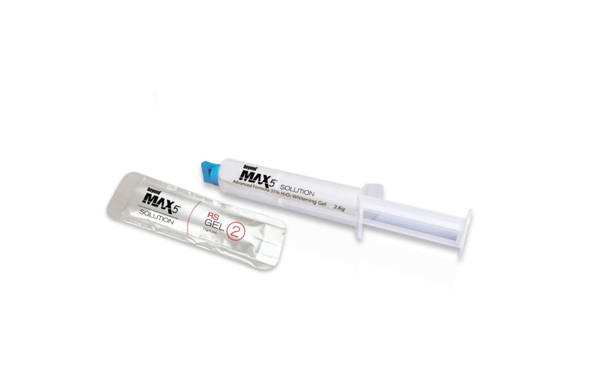 BEYOND® Max® Solution - preparat do profesjonalnego wybielania zębów w gabinetach dentystycznych. Powstał specjalnie z myślą o pacjentach z nadwrażliwością zębów. Oparty jest o formułę WRS (W - wybielanie, R - odbudowa, S - wzmocnienie). Składa się z dwóch preparatów: - żelu zawierającego 35% nadtlenek wodoru ( H2O2) pakowanego w dwukomorową strzykawkę, - żelu RS zawierającego azotan potasu (o właściwościach znoszących nadwrażliwość) i hydroksyapatyt (odbudowuje i wzmacnia szkliwo). Po zmieszaniu obu składników stężenie nadtlenku wodoru zostaje zmniejszone do poziomu 6%. Wynikiem stosowania są doskonałe wyniki wybielania w połączeniu z niewielką lub zerową wrażliwością u osób poddawanych zabiegowi Aby uzyskać najlepsze rezultaty, zaleca się stosowanie preparatu z akceleratorem BEYOND® ACCELERATOR. WAŻNE: Nie zaleca się poddawania zabiegowi kobiet w ciąży lub osób poniżej 18 roku życia. Należy niezwłocznie zakończyć procedurę wybielania, jeśli pacjent zgłosi dużą nadwrażliwość. Mieszanina powinna być przygotowana najpóźniej na 10 minut przed wykonaniem zabiegu i zużyta najszybciej, jak to jest możliwe. Nie nadaje się do przechowywania i ponownego użycia - w wyniku reakcji chemicznej składników z nadtlenkiem wodoru traci swoje właściwości. Preparat RS może być stosowany samodzielnie w domu przez pacjenta - należy go aplikować na 5 do 10 minut. Przyczynia się do zmniejszenia wrażliwości oraz wzmacnia i regeneruje szkliwo nie powodując efektu wybielającego.