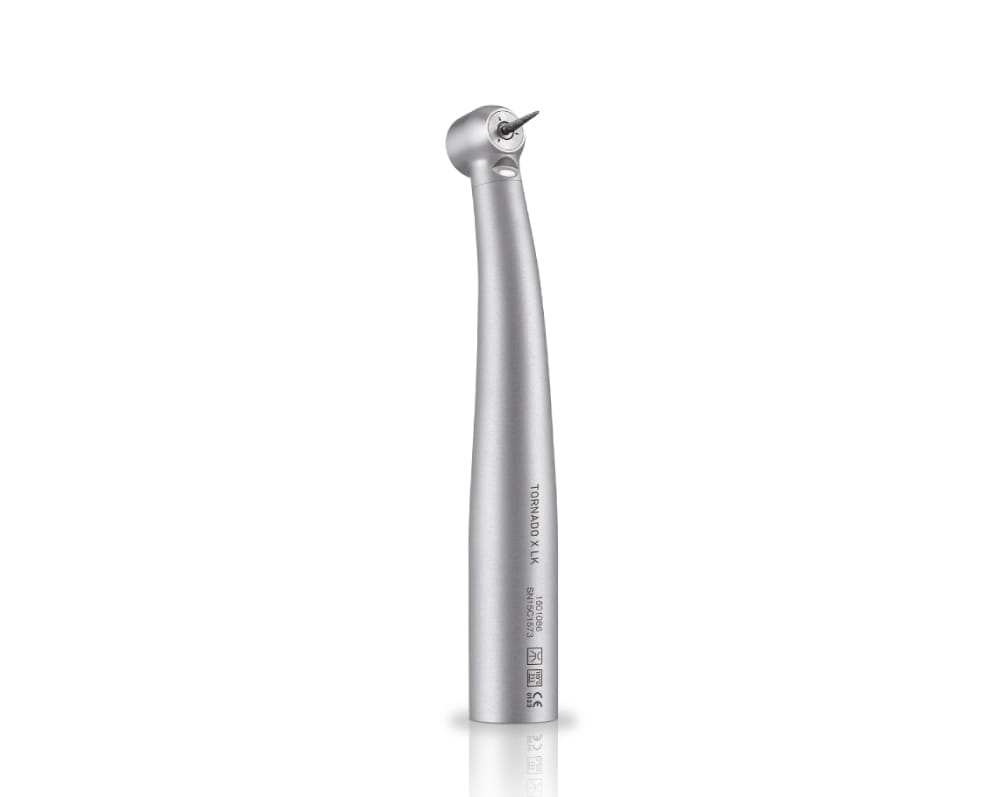 Turbina BIEN AIR Tornado X LK to wysokowydajne narzędzie stomatologiczne przeznaczone do precyzyjnej pracy w gabinecie dentystycznym. Wyposażona w szklane światłowody oraz potrójny spray wodno-powietrzny, zapewnia doskonałą widoczność pola zabiegowego oraz optymalne chłodzenie wiertła i tkanek. System mocowania wiertła typu „push” umożliwia szybką i bezpieczną wymianę narzędzi, a wbudowany mechanizm zabezpiecza przed przegrzaniem przycisku podczas pracy.