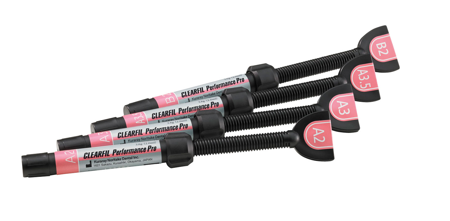 CLEARFIL™ Performance Pro to nowoczesny, uniwersalny kompozyt nanohybrydowy. Charakteryzuje go wyraźny efekt kameleona który pozwala pracować techniką jednego odcienia w odcinku przednim i bocznym, a wysoka zawartość wypełniacza sprawia, że jest niezwykle odporny na ścieranie. Ponadto cechuje się wysoką polerowalnością oraz niskim skurczem polimeryzacyjnym, wynoszącym tylko 1,9%. Jest materiałem, który można perfekcyjnie aplikować bez efektu klejenia się do narzędzia. Jego konsystencja pozwala na precyzyjne oraz łatwe modelowanie. Kompozyt dostępny jest w kolorach: A2 A3 A3.5 B2 Konfekcjonowany w: Strzykawkach 3,6 g Kampiulach 20 sztuk po 0,25 g