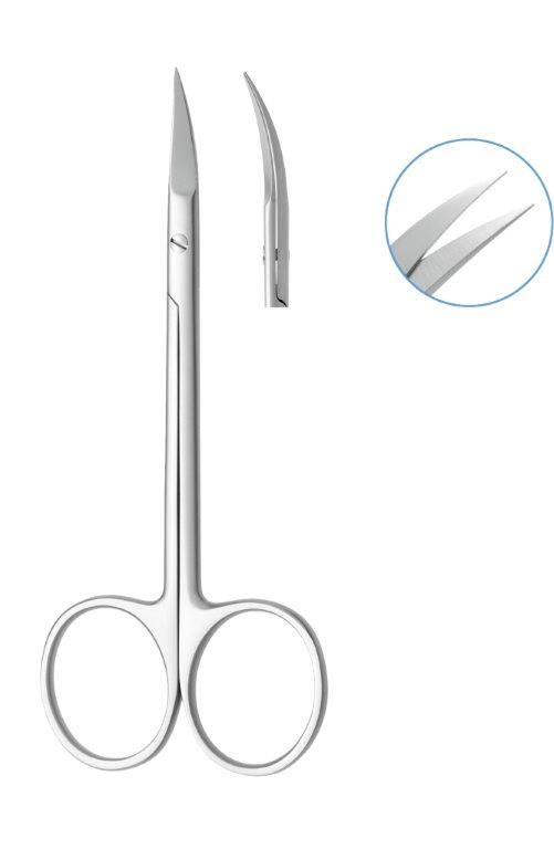 Nożyczki chirurgiczne zagięte do dziąseł. Wykonane z matowionej kulkami stali nierdzewnej. długość 115mm