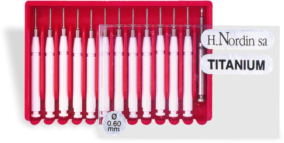 Ćwieki okołomiazgowe do wzmocnienia odbudowy korony zeba. opakowanie: 12 ćwieków 0,60 (białe) + 1 wiertło pilotujące