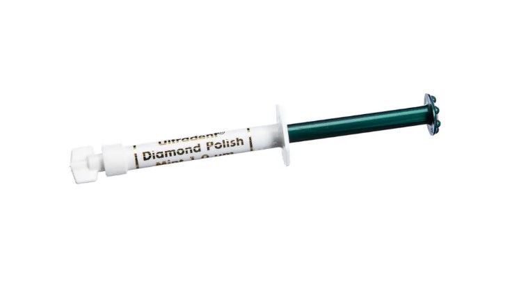 Diamond Polish Mint- pasta polerska z cząsteczkami diamentu: - Wysokogatunkowe, białe drobiny mikrokrystalicznego diamentu; - Doskonałe, estetyczne polerowanie; - Idealna do porcelany lub wypełnień kompozytowych; - Do stosowania ze szczoteczkami Jiffy lub krążkami z filcu. Opakowanie: 2 szt. strzykawek 1,2ml (1,40g), 1 µm