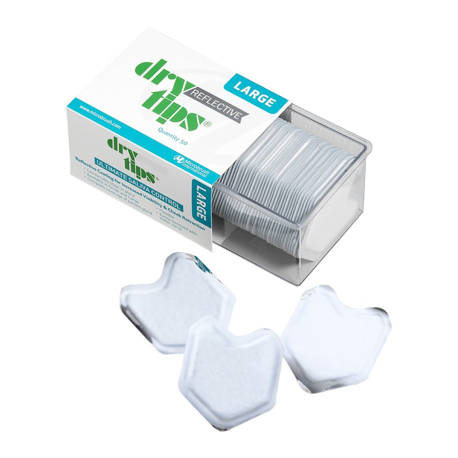 DryTips to innowacyjne wkładki policzkowe stworzone z myślą o skutecznej izolacji i kontroli wilgoci podczas zabiegów stomatologicznych. Dzięki swojej zaawansowanej konstrukcji zapewniają komfort pacjenta oraz ułatwiają pracę lekarza. Kluczowe cechy produktu: - Łatwość użycia – dobrze przylegają do policzka, nie przesuwając się podczas pracy - Ergonomiczny kształt – idealnie dopasowuje się do policzka, gwarantując wygodę pacjentowi. - Jednorazowe i higieniczne – minimalizują ryzyko zakażeń krzyżowych. - Duży rozmiar – idealny dla pacjentów dorosłych i w sytuacjach wymagających większego obszaru ochrony.