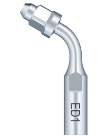 Końcówka ultradźwiękowa Woodpecker ED1 to specjalistyczny uchwyt endo 120° typu endo-chuck, przeznaczony do pracy w systemie NSK (standard Satelec). Oznaczenie „E” wskazuje na zastosowanie w endodoncji, natomiast litera „D” bezpośrednio po pierwszej literze oznacza kompatybilność z systemem NSK / DTE. Zgodnie z informacją producenta model ED1 rekomendowany jest do oczyszczania i irygacji kanałów korzeniowych, zwykle w zębach przednich. Zalety: Rekomendowana do oczyszczania i irygacji kanałów korzeniowych. Geometria 120° ułatwiająca pracę w odcinku przednim. Stabilne mocowanie pilników o średnicy 0,7 mm lub 0,8 mm. Precyzyjna transmisja drgań na instrument kanałowy. Możliwość wielokrotnej sterylizacji w autoklawie. Ekonomiczne rozwiązanie o wysokim standardzie wykonania. Cechy: Profil zastosowania E (Endodoncja). System kompatybilności D – NSK / Satelec. Konstrukcja typu endo-chuck 120°. Przystosowana do pilników o średnicy trzonu 0,7 mm lub 0,8 mm. Wykonana ze stali nierdzewnej medycznej. Gładkie wykończenie powierzchni. Informacje techniczne: Typ: ED1. Kąt uchwytu: 120°. Zastosowanie: oczyszczanie i irygacja kanałów korzeniowych (głównie zęby przednie). Kompatybilność: skalery ultradźwiękowe w systemie NSK / Satelec / DTE. Obsługiwane pilniki: O 0,7 mm lub O 0,8 mm (nie stosować zamiennie w tym samym uchwycie). Zalecenia eksploatacyjne: dokręcać wyłącznie dołączonym kluczem płaskim; nie dokręcać nadmiernie; nie dokręcać bez zamocowanego pilnika. Sterylizacja: autoklaw (zgodnie z zaleceniami producenta).