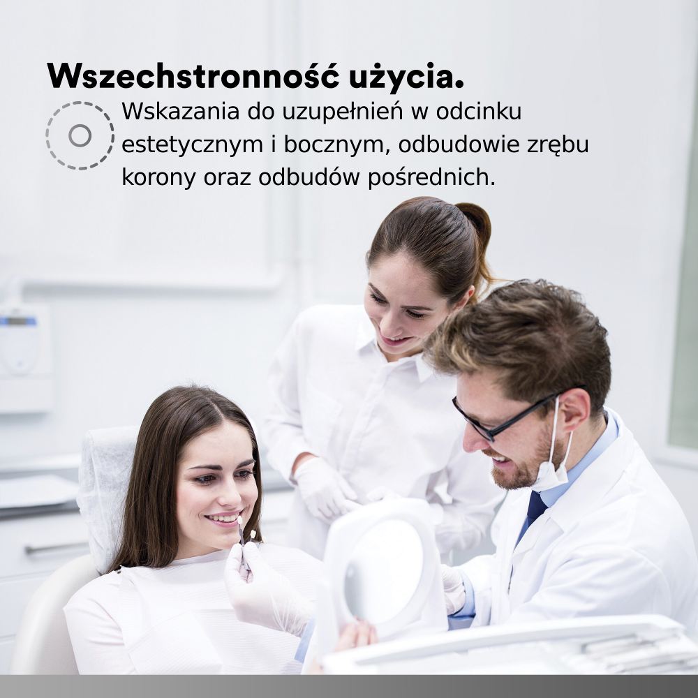 Uniwersalny materiał do wypełnień Filtek™ Z250 z niezawodną technologią od 3M, idealnie dopasowany do wypełnień z w zębach przednich i bocznych w technice z jedną przeziernością. - Uniwersalny, światłoutwardzalny materiał kompozytowy. - Uniwersalny kompozyt o przezierności umożliwiającej zastosowanie w zębach przednich i bocznych. - Doskonałe, długoletnie efekty kliniczne. - Łatwa aplikacja dzięki zmniejszonemu przyleganiu do narzędzi. - Szybkie utwardzanie. - Zmniejszony skurcz polimeryzacyjny. - Opatentowany wypełniacz: tlenek cyrkonu/krzemionka zwiększający kontrast w promieniach RTG. Zastosowanie: - bezpośrednie wypełnienia w odcinku przednim i bocznym, - pośrednie typy: wkłady, nakłady i licówki, - technika kanapkowa, - odbudowa zrębu korony, - odbudowa powierzchni żującej, - szynowanie. Opakowanie: strzykawka (4 g) w odcieniu B2