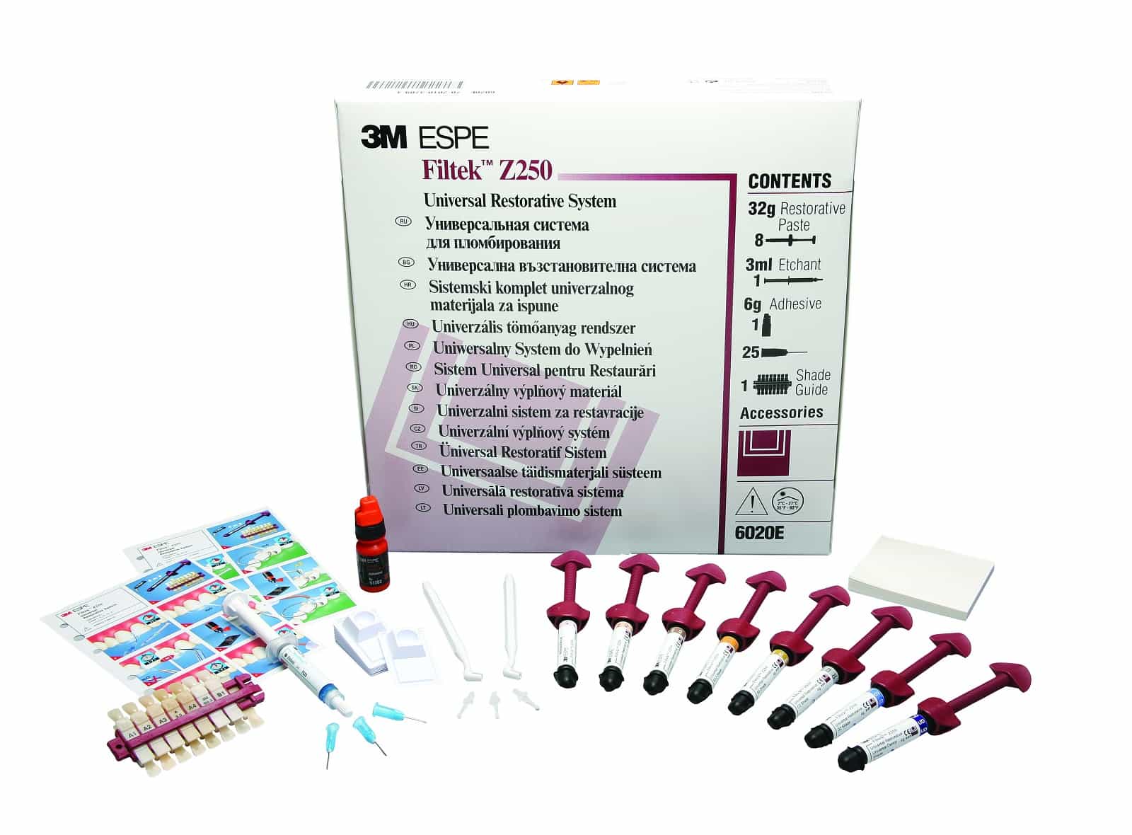 Uniwersalny materiał do wypełnień Filtek™ Z250 z niezawodną technologią od 3M, idealnie dopasowany do wypełnień z w zębach przednich i bocznych w technice z jedną przeziernością. - Uniwersalny, światłoutwardzalny materiał kompozytowy. - Uniwersalny kompozyt o przezierności umożliwiającej zastosowanie w zębach przednich i bocznych. - Doskonałe, długoletnie efekty kliniczne. - Łatwa aplikacja dzięki zmniejszonemu przyleganiu do narzędzi. - Szybkie utwardzanie. - Zmniejszony skurcz polimeryzacyjny. - Opatentowany wypełniacz: tlenek cyrkonu/krzemionka zwiększający kontrast w promieniach RTG. Zastosowanie: - bezpośrednie wypełnienia w odcinku przednim i bocznym, - pośrednie typy: wkłady, nakłady i licówki, - technika kanapkowa, - odbudowa zrębu korony, - odbudowa powierzchni żującej, - szynowanie. Opakowanie: - 1 strzykawka (4 g) w odcieniu A1 - 1 strzykawka (4 g) w odcieniu A2 - 1 strzykawka (4 g) w odcieniu A3 - 1 strzykawka (4 g) w odcieniu A3,5 - 1 strzykawka (4 g) w odcieniu B3 - 1 strzykawka (4 g) w odcieniu C2 - 1 strzykawka (4 g) w odcieniu D3 - 1 strzykawka (4 g) w odcieniu UD - system łączący: Adper Single Bond 2 (6 ml) - wytrawiacz w żelu Scotchbond (3 ml) - końcówki do nakładania - akcesoria.
