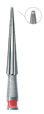 Finir z węglika spiekanego na turbinę do wygładzania powierzchni, stożek długi z nieaktywnym wierzchołkiem do końcowego wygładzania powierzchni, 30 ultra delikatnie tnących ostrzy (biały pasek) rozmiar 014, długość części pracującej 9mm