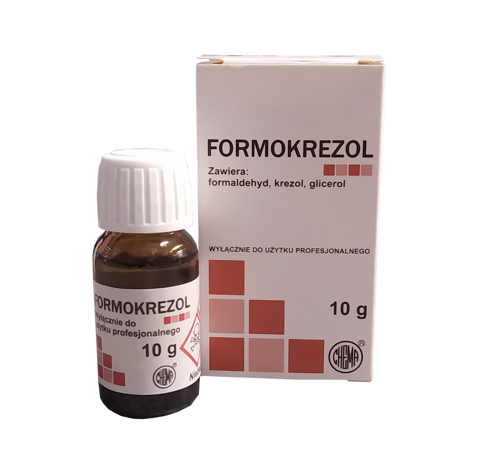 Formokrezol firmy Chema-Elektromet to sprawdzony preparat stomatologiczny przeznaczony do miejscowego stosowania w leczeniu endodontycznym. Stosowany głównie przy amputacjach miazgi w zębach mlecznych oraz w leczeniu kanałowym jako środek dezynfekujący miazgę i kanały korzeniowe. Skład : Formaldehyd Krezol Gliceryna Właściwości: Silne działanie bakteriobójcze i mumifikujące – zapewnia skuteczne oczyszczenie tkanek. Działa antyseptycznie i przeciwgnilnie – redukuje ryzyko powikłań infekcyjnych. Stabilna konsystencja – wygodna aplikacja na tamponik lub wacik. Zastosowanie: Amputacja miazgi w zębach mlecznych (pulpotomia). Dezynfekcja kanałów korzeniowych w leczeniu endodontycznym. Czasowe zabezpieczenie kanału między wizytami. Opakowanie: buteleczka 10 g z zakraplaczem – łatwe i precyzyjne dozowanie.