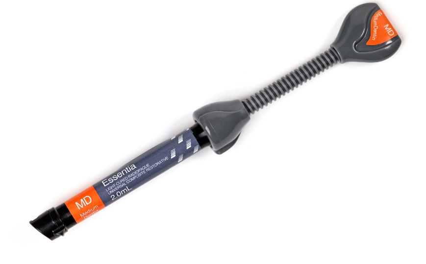 Essentia – uniwersalny światłoutwardzalny kompozyt do estetycznej odbudowy warstwowej ze zredukowaną paletą odcieni. Każdy odcień Essentia to unikalne połączenie zalet użytkowych i właściwości optycznych. Odcienie zębiny różnią się nasyceniem barwy i przeziernością, odpowiednio do zmian zachodzących w naturalnej zębinie wraz z wiekiem pacjenta. Odcienie szkliwne zapewniają przezierność i wprowadzają efekt witalności do odbudowanych zębów. Płynny liner maskujący z wysoką zawartością wypełniacza umożliwia pokrywanie cienką, opakerową warstwą niedoskonałości i przebarwień System wzbogacono o cztery modyfikatory do szybkiej charakteryzacji odbudów i tworzenia efektu halo, które poszerzą możliwości odtwórcze. Materiał jest nieprzepuszczalny dla promieni RTG. uzupełnienie: strzykawka 2ml w odcieniu MD (Medium Dentin)