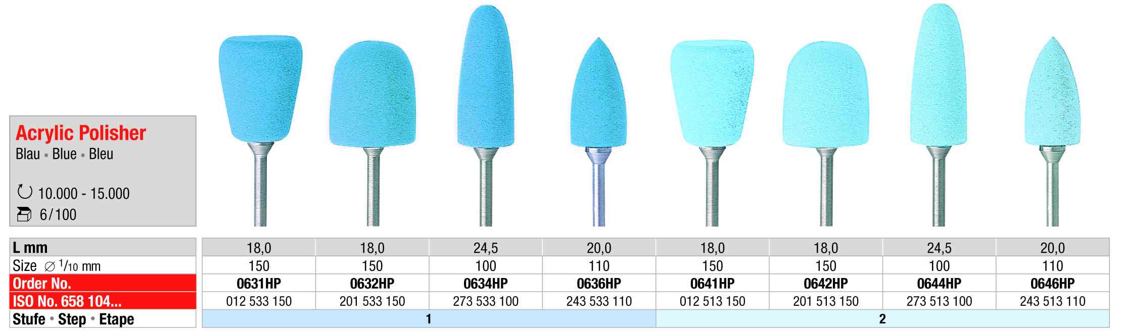 Gumki do akrylu na prostnicę Edenta 0631HP niebieskie, stożek odwrócony duży, zgrubne do polerowania wstępnego