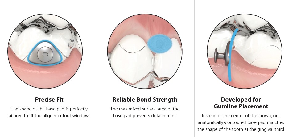Guziki ortodontyczne są przeznaczone do terapii typu Aligner. Zaprojektowane tak, aby idealnie pasował do wyciąć alignera Guziczki przyklejane, wyprofilowane, dopasowujące się do zęba na linii dziąseł. Frezowane krawędzie zapobiegają podrażniemiom dziąseł. Opakowanie 25 szt.