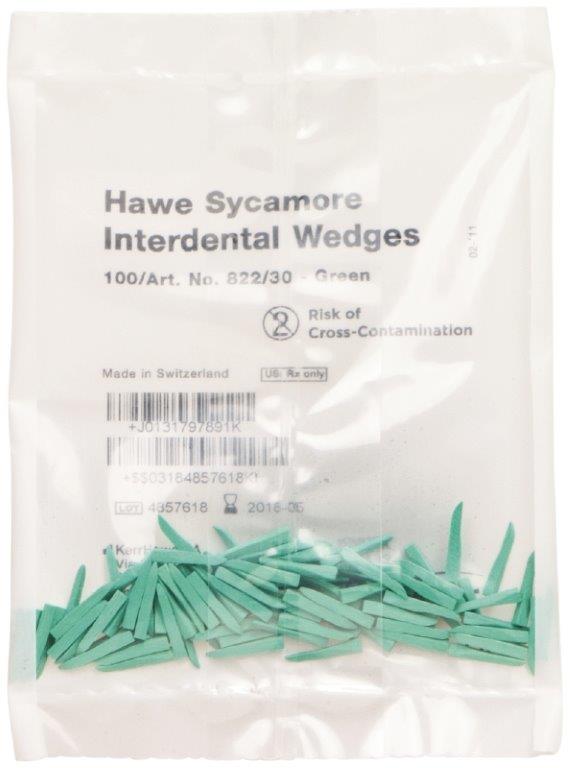 Anatomiczne międzyzębowe kliny z drewna jaworowego. Zachowują stabilność kształtu oraz zdolność do kompresji, dzięki czemu optymalnie przylegają do zęba. Wklęsły kształt dopasowuje się do naturalnej krzywizny tkanek twardych. Umożliwia to odpowiednią separację i prawidłowe odbudowanie punktu stycznego. Skierowany ku górze koniec chroni brodawkę dziąsłową przed uszkodzeniem Zaopatrzone w kwadratowy trzonek ułatwiający jego wprowadzenie. uzupełnienie: 100 klinów kolor zielony wymiary (dł. x szer. x wys.): 13mm x 2mm x 2mm