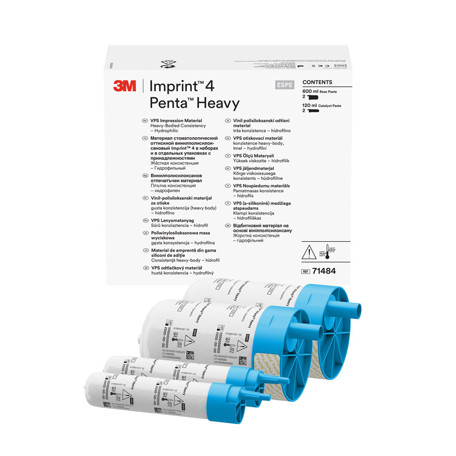 Imprint 4 to precyzyjna, hydrofilowa A-silikonowa masa do pobierania wycisków metodą jednoczasową-jednowarstwową i jednoczasową-dwuwarstwową. Masa wyciskowa Imprint 4 to materiał z najkrótszym dostępnym na rynku czasem pracy w jamie ustnej pacjenta. Materiał ten to połączenie pełnej kontroli, precyzji i szybkości pracy. Właściwości masy pozwalają na pobranie doskonałego precyzyjnego wycisku już za pierwszym razem. Imprint 4 zapewnia wystarczająco długi czas na przygotowanie masy i krótki czas wiązania. Wykorzystując specjalną chemię zawartą w materiale czas wiązania nie rozpoczyna się do momentu rozpoczęcia pracy w jamie ustnej pacjenta. Imprint 4 jest materiałem super-hydrofilowym co oznacza, że idealnie zapływa w trudno dostępne miejsca nawet w wilgotnym środowisku. Ta cecha umożliwia odtworzenie najdokładniejszych szczegółów, zapewniając najwyższą precyzję i ostrokonturowość pobranego wycisku. Wskazania: - Wyciski pod implanty. - Wyciski pod inlay’e i onlay’e. - Wyciski pod korony i mosty. Opakowanie: - 2x pasta bazowa każda po 300 ml, Heavy (I warstwa); - 2x pasta katalizatora każda po 60 ml. *do automatycznego mieszania w mieszalniku 3M Pentamix.