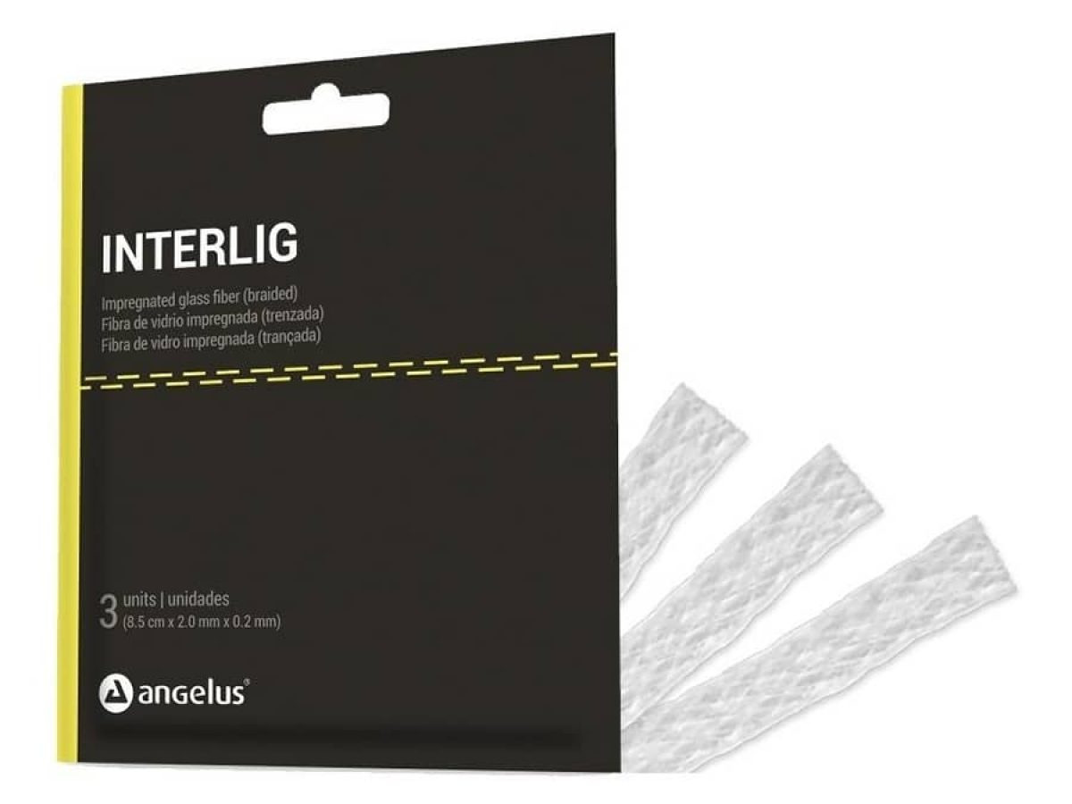 Interlig marki Angelus to pleciona taśma z włókna szklanego, wzmacniana żywicą i gotowa do natychmiastowego użycia. Służy do szynowania zębów, wzmacniania prac tymczasowych, odbudowy zębów złamanych, wypełnień kompozytowych oraz jako element retencyjny w leczeniu ortodontycznym i protetycznym. Dzięki swojej elastyczności, wytrzymałości i łatwej adaptacji, Interlig jest niezawodnym rozwiązaniem w codziennej praktyce klinicznej. Cechy : Pleciona struktura – zapewnia doskonałe właściwości mechaniczne i idealne zespolenie z materiałami kompozytowymi. Gotowa do użycia – nasączona żywicą, nie wymaga wcześniejszego preparowania. Estetyczna i przezierna – niewidoczna po pokryciu kompozytem. Elastyczna i łatwa w formowaniu – idealna do anatomicznego dopasowania. Kompatybilna z większością kompozytów światłoutwardzalnych. Zastosowanie : Szynowanie zębów ruchomych (urazy, choroby przyzębia) Wzmacnianie odbudów kompozytowych i tymczasowych. Odbudowa zębów złamanych. Wzmocnienie mostów adhezyjnych. Retencja po leczeniu ortodontycznym.