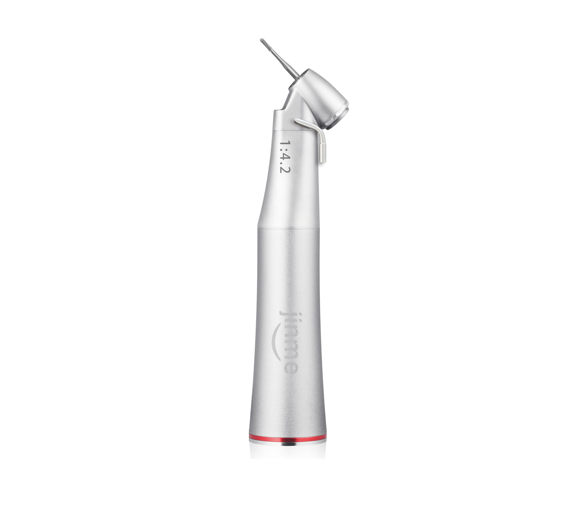 Kątnica chirurgiczna JINME 1:4.2W L ze światłem – 45° External Spray i system Rear Exhaust (ISO 3964) JINME 1:4.2W L to zaawansowana kątnica chirurgiczna przeznaczona do pracy z mikrosilnikami stomatologicznymi w standardzie ISO E-type zgodnym z normą ISO 3964. Konstrukcja 45° zapewnia bardzo dobrą dostępność do pola zabiegowego, szczególnie podczas zabiegów chirurgicznych w odcinkach bocznych oraz procedur takich jak separacja korzeni czy usuwanie zębów zatrzymanych. Przełożenie 1:4.2 zwiększa prędkość obrotową instrumentu, umożliwiając osiągnięcie prędkości do 168 000 obr./min przy mikrosilniku pracującym z prędkością 40 000 obr./min. Kątnica wyposażona jest w światłowód, który przewodzi światło z mikrosilnika do główki instrumentu i poprawia widoczność pola operacyjnego. Model posiada zewnętrzny system chłodzenia (External Spray) umożliwiający podawanie sterylnej soli fizjologicznej bezpośrednio z pompy irygacyjnej, co jest standardem w chirurgii kostnej. Zastosowany system Rear Exhaust odprowadza powietrze napędowe tyłem instrumentu, eliminując jego wyrzut w polu operacyjnym i zwiększając bezpieczeństwo zabiegu. Solidny korpus wykonany ze stali nierdzewnej oraz ceramiczne łożyska o wysokiej odporności na obciążenia boczne zapewniają stabilną pracę instrumentu oraz wysoką trwałość w intensywnej praktyce chirurgicznej. Zalety konstrukcja 45° ułatwiająca dostęp do pola zabiegowego podczas chirurgii stomatologicznej przełożenie 1:4.2 zwiększające prędkość obrotową instrumentu maksymalna prędkość pracy do 168 000 obr./min światłowód zapewniający bardzo dobrą widoczność pola operacyjnego kompatybilność z mikrosilnikami ISO E-type / ISO 3964 zewnętrzny spray umożliwiający chłodzenie sterylną solą fizjologiczną system Rear Exhaust eliminujący wyrzut powietrza w polu operacyjnym ceramiczne łożyska o podwyższonej odporności na obciążenia boczne Cechy kątnica chirurgiczna 45° do zabiegów chirurgii stomatologicznej przełożenie 1:4.2 (speed increasing) typ wierteł FG – O 1,6 mm system mocowania wierteł push-button kompatybilność z mikrosilnikami stomatologicznymi ISO E-type (ISO 3964) oświetlenie światłowodowe zewnętrzny system chłodzenia z możliwością podłączenia irygacji solidna konstrukcja ze stali nierdzewnej Informacje techniczne Typ: kątnica chirurgiczna 45° Model: L 1:4.2W L Przełożenie: 1:4.2 Oświetlenie: światłowód System chłodzenia: zewnętrzny spray (External Spray) System odprowadzania powietrza: Rear Exhaust Typ wierteł: FG – O 1,6 mm System mocowania: push-button Sposób mocowania: mikrosilnik stomatologiczny ISO E-type / ISO 3964 Kompatybilność: mikrosilniki pneumatyczne i elektryczne Łożyska: ceramiczne o podwyższonej odporności na obciążenia boczne Średnica główki: ok. 10,3 mm Wysokość główki: ok. 14,5 mm Maksymalna prędkość: 168 000 obr./min Sterylizacja: autoklaw do 135 °C Gwarancja 12 miesięcy od daty zakupu. Warunkiem jest użytkowanie zgodnie z instrukcją producenta. Serwis realizowany przez KolDental. ----------------------------------------------- Najpopularniejsze kątnice JINME JINME 1:1L – kątnica z przełożeniem 1:1 i światłowodem do codziennych procedur stomatologicznych. JINME 1:5L – kątnica przyspieszająca zwiększająca prędkość obrotową mikrosilnika stosowana w preparacji protetycznej. JINME 20:1L – kątnica implantologiczna o wysokim momencie obrotowym do zabiegów chirurgicznych i implantologicznych. JINME 1:1 M3-CA – ekonomiczna kątnica bez światła przeznaczona do codziennej pracy w gabinecie stomatologicznym.