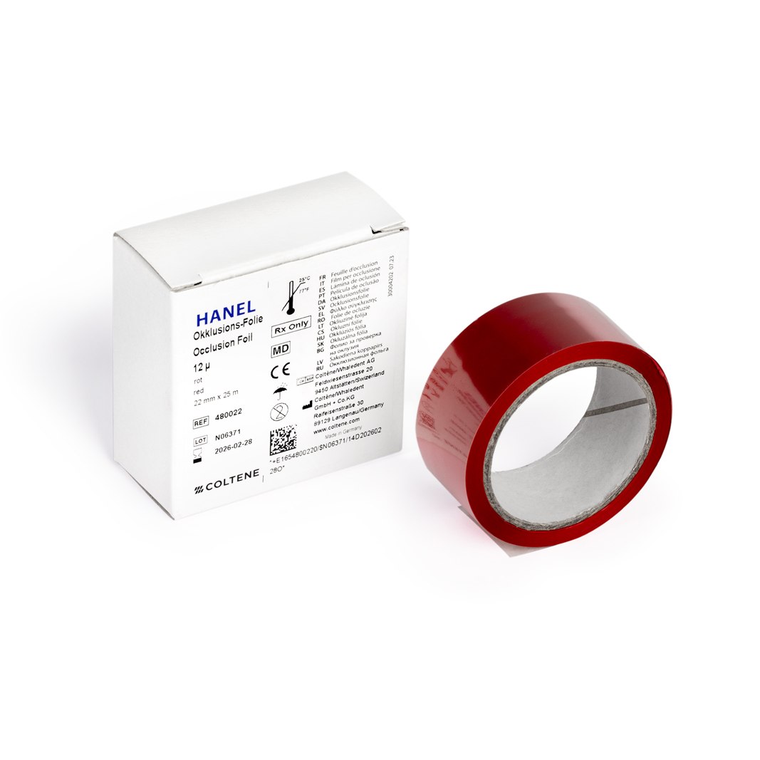 Folia artykulacyjna przeznaczona do dokładnej kontroli okluzji. W kierunku wzdłużnym wykazuje niezwykłą odporność na zerwanie. W kierunku poprzecznym jest doskonale rozciągliwa, co znacznie poprawia zdolność przylegania i minimalizuje przez to pseudo kontakty. uzupełnienie: jednostronna kalka w rolce, czerwona, 22 mm x 25 m