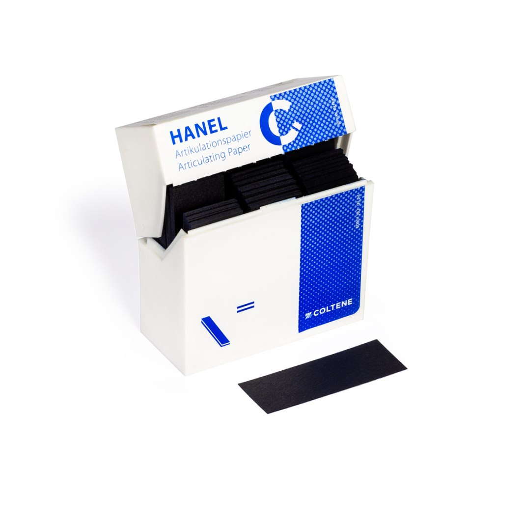 Papier artykulacyjny grubości 200 mikronów. Wykonany z antystatycznego materiału pokrytego dwustronnie nietoksycznym barwinikiem. Poręczne opakowanie z porcjowanymi listkami ułatwia użycie. Przeznaczony do do zgrubnej kontroli okluzyjnej (progresywnego oznakowania siły żucia). Słabe punkty kontaktowe okluzji widoczne są jako niewielkie punkty. Przy silniejszych punktach kontaktowych zabarwiają się większe powierzchnie. opakowanie: 300 listków w kolorze niebieskim