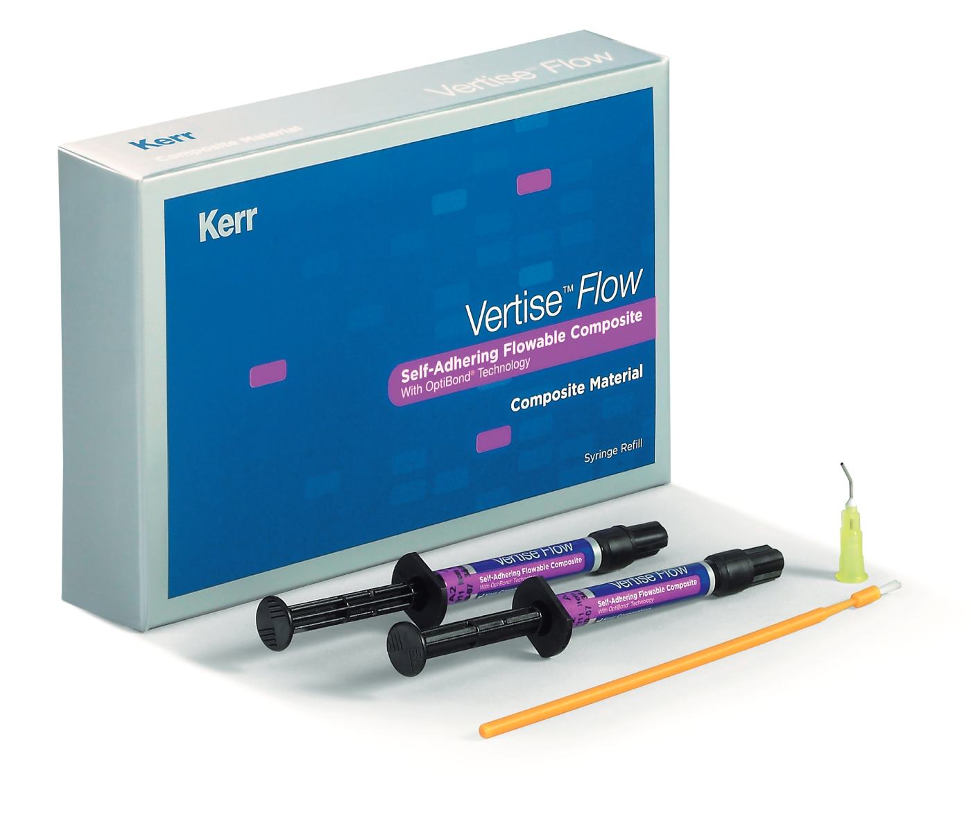 Vertise Flow - samoadhezyjny, światłoutwardzalny materiał kompozytowy. Wykazuje działanie systemu wiążącego ( wysokie siły łączenia z zębiną i szkliwem) oraz doskonałe własności mechaniczne oraz użytkowe. Nie wymaga stosowania dodatkowych etapów, jak wytrawianie/zastosowanie primera/bonding, Wskazania: - wypełnienia niewielkich ubytków klasy I i II w zębach stałych, - wypełnienia ubytków wszystkich klas w zębach mlecznych, - podkład typu total liner, zakładany na wszystkie powierzchnie ubytku, - uszczelnianie bruzd i zagłębień, - naprawa defektów szkliwa, - naprawa uzupełnień protetycznych, - odbudowa pod uzupełnienia protetyczne, - blokowanie podcieni i szynowanie. opakowanie: 2 strzykawki x1g kolor A2, akcesoria