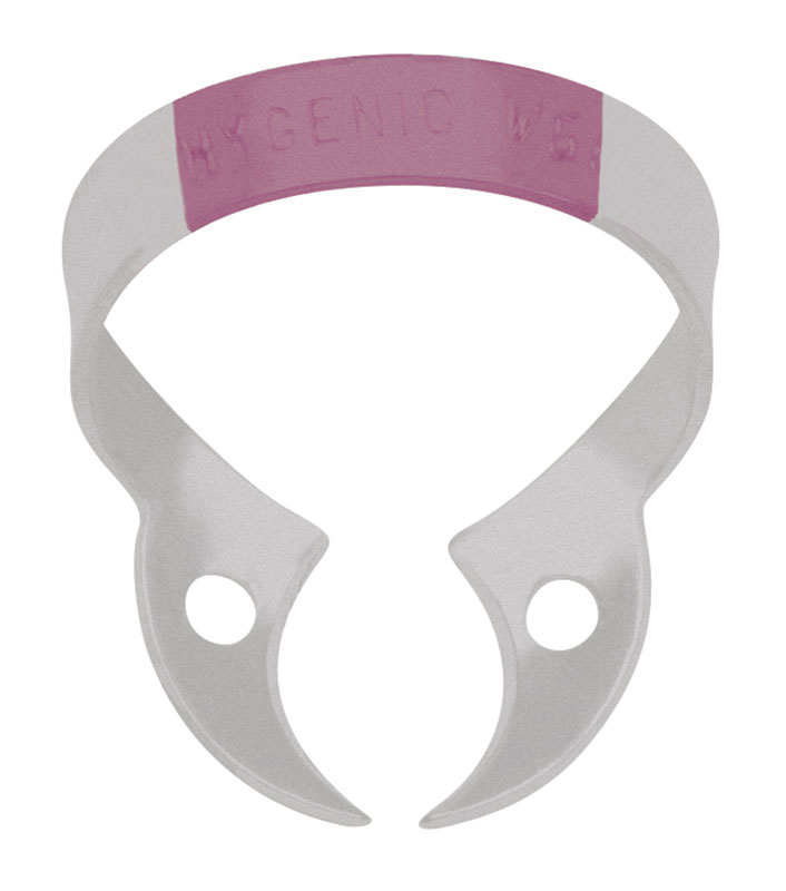 Klamra bez skrzydełek do koferdamu. Nie posiada ząbków przy szczękach. Nalezy ją najpierw umieścić na zębie, a następnie wokół niego rozciągnąć koferdam. Oznaczona jest literą "W" poprzedzającą numer klamry. Oznaczenie kolorami ułatwia identyfikację. Matowe wykończenie nie powoduje odbić i zapewnia lepszą widoczność opakowanie: klamra do małych górnych zębów trzonowych;