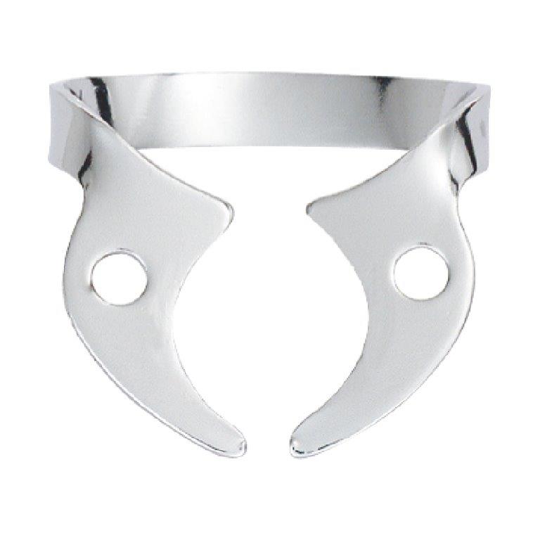 Klamra bez skrzydełek do koferdamu, błyszcząca. Nie posiada ząbków przy szczękach. Nalezy ją najpierw umieścić na zębie, a następnie wokół niego rozciągnąć koferdam. Oznaczona jest literą "W" poprzedzającą numer klamry. opakowanie: uniwersalna klamra bez skrzydełek do trzonowych zębów żuchwowych.