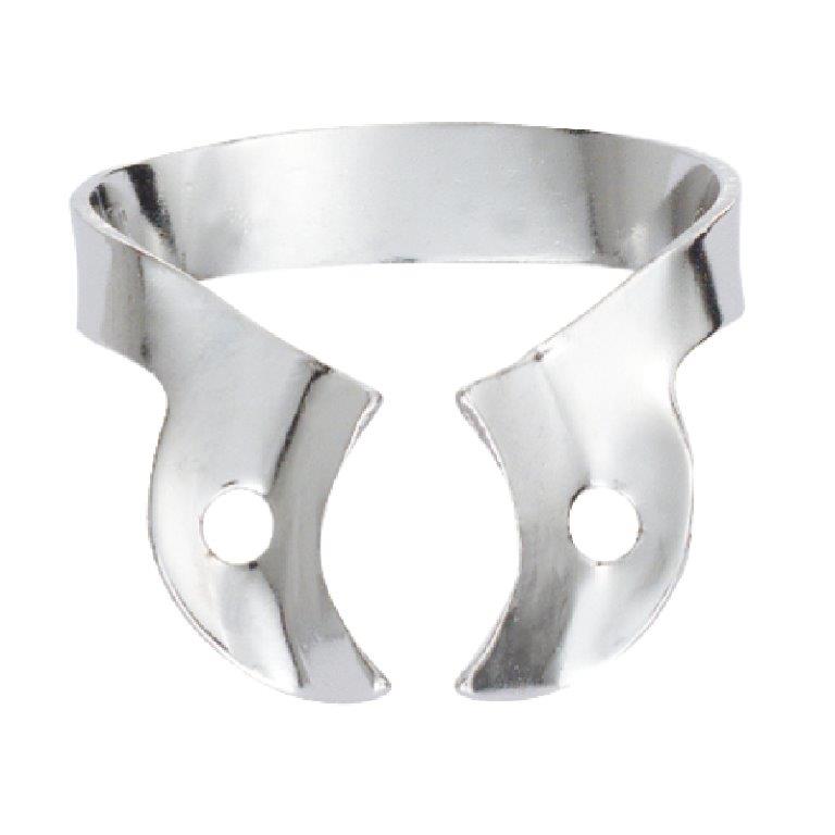 Klamra bez skrzydełek do koferdamu, błyszcząca. Nie posiada ząbków przy szczękach. Nalezy ją najpierw umieścić na zębie, a następnie wokół niego rozciągnąć koferdam. Oznaczona jest literą "W" poprzedzającą numer klamry. opakowanie: uniwersalna klamra do górnych zębów trzonowych