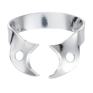 Klamra bez skrzydełek do koferdamu, błyszcząca. Nie posiada ząbków przy szczękach. Nalezy ją najpierw umieścić na zębie, a następnie wokół niego rozciągnąć koferdam. Oznaczona jest literą "W" poprzedzającą numer klamry. opakowanie: klamra do zębów trzonowych nieregularnych, uszkodzonych lub częściowo wyrżniętych - małe