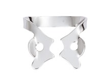 Klamra ze skrzydełkami do koferdamu, błyszcząca. Posiada ząbki przy szczękach. Zapewnia dodatkową retrakcję koferdamu. Należy ją najpierw umieścić w otworze koferdamu, a następnie wraz z płatem gumowym umieścić na zębie. opakowanie: ogólna klamra do większych zębów dwuguzkowych, żuchwowych. 1 sztuka