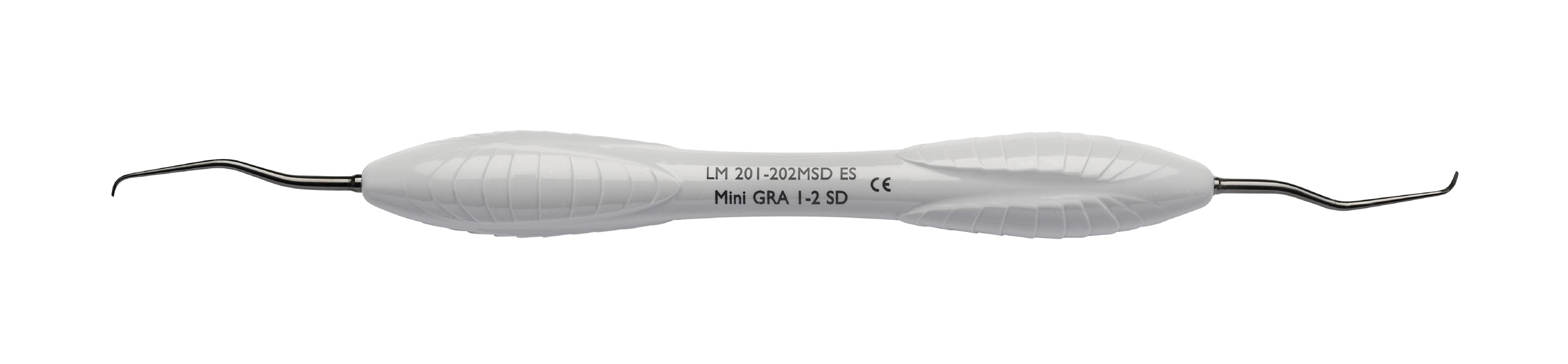 Kireta mini Gracey #1/2, uchwyt ErgoSense (ES). Wersja Sharp Diamond, nie wymaga ostrzenia. Kireta dwustronna ze specjalnie wyprofilowanymi mniejszymi ostrzami na przedłużonych szyjkach. Ostrza wykonano z wyjątkowo wytrzymałego specjalnego stopu metalu. Jego odporność na ścieranie jest wzmocniona membranową mikro powłoką diamentową Sharp Diamond*. Eliminuje to konieczność częstego ostrzenia końcówek i redukuje ich zużycie o 82%. Jest polecana lekarzom, którzy często korzystają z narzędzi ręcznych. Wygodna ergonomiczna rękojeść zapewnia wysoki komfort podczas pracy. Jest przeznaczona do usuwania głębokich złogów kamienia na przedsionkowych powierzchniach zębów przednich i przedtrzonowych. *Twardość powłoki w skali Rockwella wynosi 63 HRC. Lista kiret i skalerów LM dostępnych w wersji Sharp Diamond: Micro Sickle SD 301-302SDES Mini Sickle SD 311-312SDES Mini Syntette SD 215-216MSDES Mini Syntette Anterior SD 275-276MSDES Mini Gracey 1/2 SD 201-202MSDES Mini Gracey 7/8 SD 207-208MSDES Mini Gracey 11/12 SD 211-212MSDES Mini Gracey 13/14 SD 213-214MSDES Mini Gracey 15/16 SD 245-246MSDES Mini Gracey 17/18 SD 247-248MSDES Scaler H6-H7 SD 146-147SDES Gracey 1/2 SD 201-202SDES Gracey 7/8 SD 207-208SDES Gracey 11/12 SD 211-212SDES Gracey 13/14 SD 213-214SDES LM-Syntette SD 215-216SDES Syntette Anterior SD 275-276SDES Columbia 4L-4R SD 219-220SDES Barnhart 5-6 SD 227-228SDES Sickle LM23 SD 313-314SDES LM-SharpJack SD 315-316SDES Scaler LM Nebraska 128 SD 128-128SDES