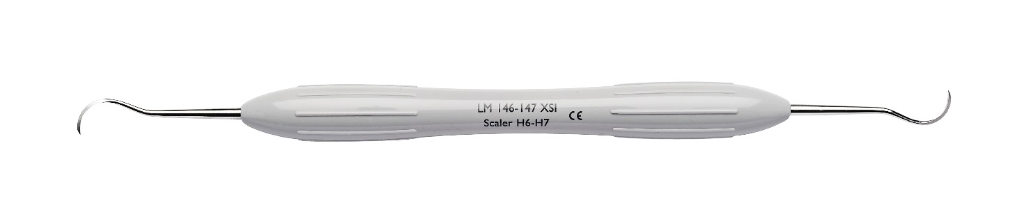 Sierp dwustronny do usuwania dużych naddziąsłowych złogów nazębnych. Narzędzie posiada zaokrąglone ostre końcówki w kształcie haków do ściągania złogów w obrębie zębów bocznych. Wyprofilowana szyjka końcówek nie zasłania pola pracy. Dostępne skalery Sickle LM: Micro Sickle LM204SD 301-302ES (uchwyt ErgoSense) 301-302XSI (uchwyt ErgoMax) Sickle 204S 303-304ES 303-304XSI Mini Sickle 311-312ES 311-312XSI Sickle LM23 313-314ES 313-314XSI Crane-Kaplan 322-323ES 322-323XSI Mini Kaplan 333-334ES 333-334XSI Mc Call 11A-12A 324-325ES 324-325XSI Sickle Scaler 141ES 141XSI Scaler "U15 Towner" 150ES 150XSI Push Scaler H4-H5 144-145ES 144-145XSI Scaler H6-H7 146-147ES 146-147XSI Laplander 148-149ES 148-149XSI Scaler LM Nebraska 128 128-128ES 128-128XSI