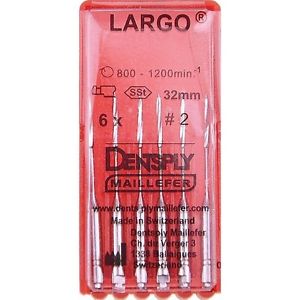 Wiertła typu Largo do mechanicznego opracowywania części koronowej kanału w celu uzyskania lepszego dostępu. Wykonane ze stali nierdzewnej o cylindrycznym kształcie. opakowanie: 6 wierteł długości 32mm, rozmiar 2