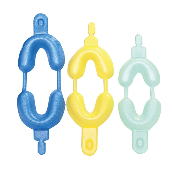Jednorazowe łyżki do fluoryzacji z podwójnym łukiem. Łyżki służą do fluoryzacji za pomocą żelu lub pianki. Wykonane są z miękkiego tworzywa, a ich unikalny kształt zapewnia bezpieczeństwo pacjenta - żel nie przedostanie się do gardła, co niweluje możliwość zadławienia. Występują w 3 kolorach i rozmiarach: niebieskie (duże) żółte (średnie) zielone (małe) Opakowanie: 100 łyżek (50 par na oba łuki) w rozmiarze S, zielone.
