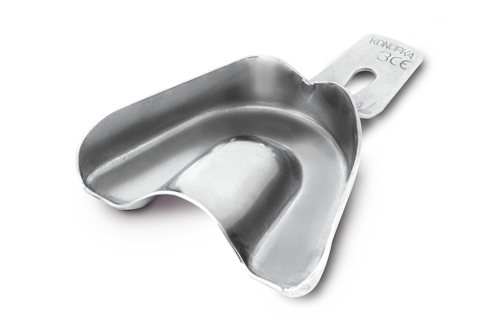 Łyżki wyciskowe pełne bez rantu i perforacji do braków częściowych Wykonane ze stali nierdzewnej. opakowanie: łyżka do łuku górnego, mała, rozmiar nr 1