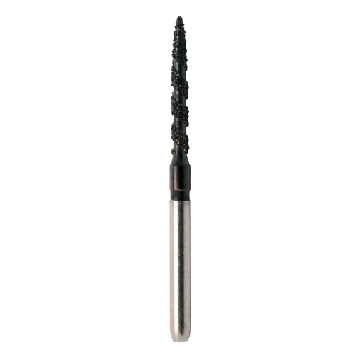 Meisinger Black Cobra - wiertła ze wzmacnianym nasypem diamentowym na turbinę. Posiadają specjalną powłokę z węgla diamentowego Carbocer © (diamond like carbon - diament jak węglik). Są wysoce trwałe, odporne na ścieranie, niskie tarcie i korozję oraz działanie kwasów, zasad i substancji organicznych. Spiralnie formowany nasyp ułatwia odprowadzanie opiłków i zapobiega zapychania się wiertła. Nadają się do codziennego intensywnego użytkowania. płomyk długi, rozmiar 014