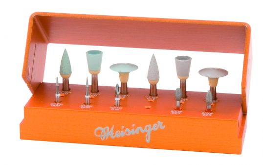 Zestaw instrumentów do polerowania uzupełnień kompozytowych. Zawiera wiertła z delikatnym nasypem diamentowym, których kształt ułatwia dostęp do powierzchni: - językowych zębów przednich, - międzyzębowych w zębach bocznych, - okluzyjnych w zębach trzonowych. W skład zestawu wchodzą także gumki do dwuetapowego wykończenia i polerowania uzupełnień. Umożliwiają doskonałe opracowanie szczelin oraz powierzchni licowych zębów przednich. Zawartość zestawu (po 1 szt każdego narzędzia): 830F 314 023 833F 314 023 HM 246U 314 009 HM 247U 314 009 HM 274U 314 016 9712M 204 040 9714M 204 060 9718M 204 100 9712F 204 040 9714F 204 060 9718F 204 100