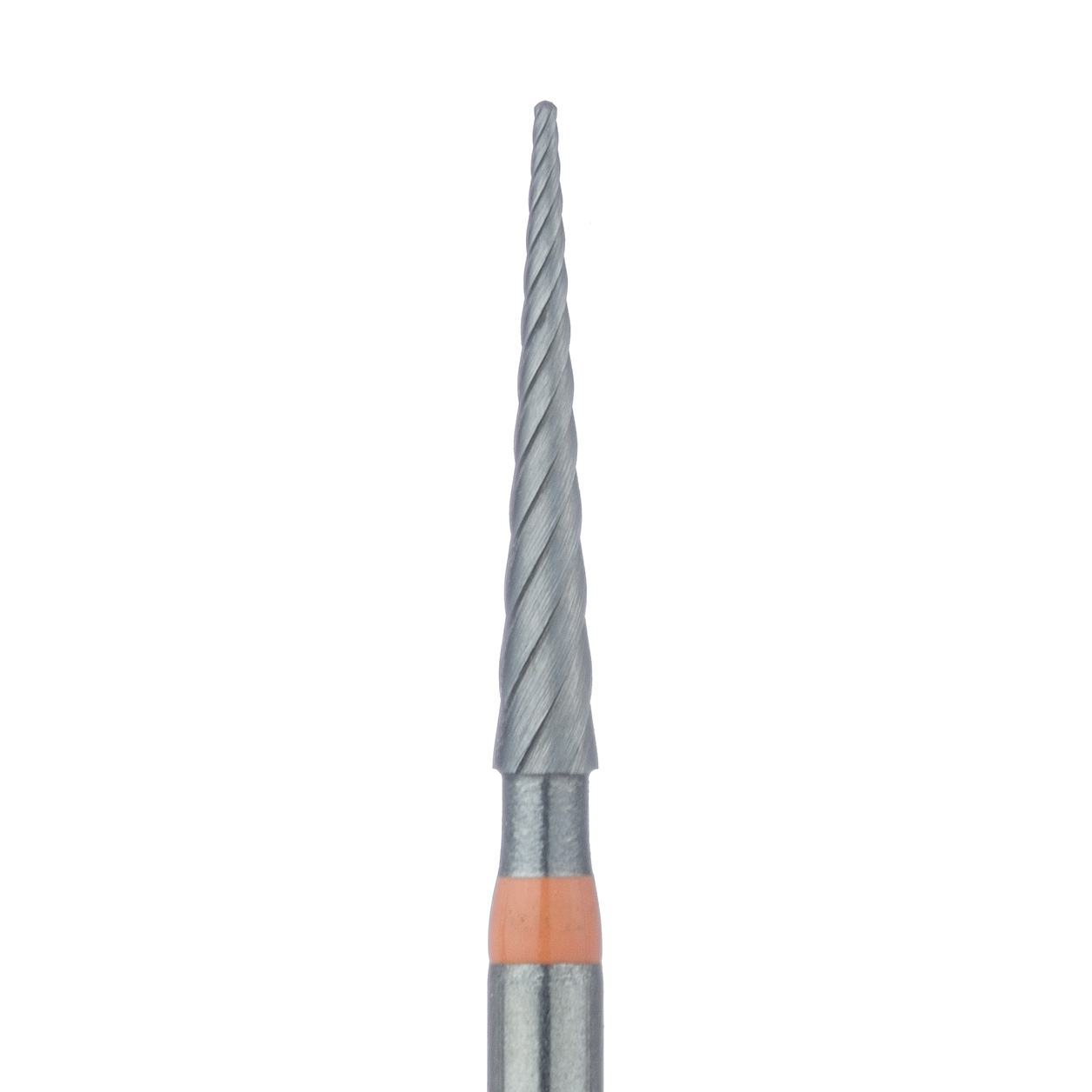 Finir z węglika spiekanego ze skręconymi ostrzami na turbinę długi wąski stożek - szczelinowiec, 8-12 ostrzy delikatnie tnący (pomarańczowy pasek) rozmiar 014