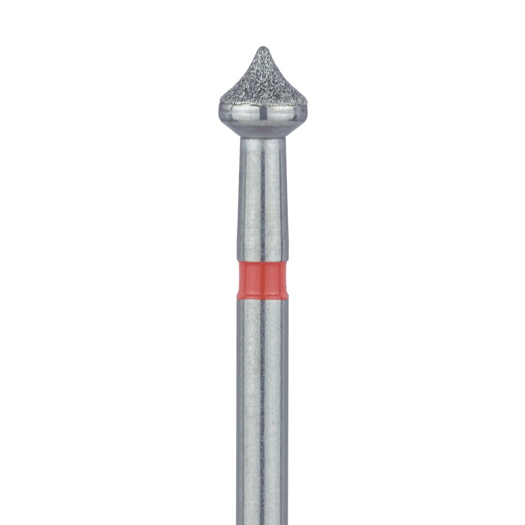 Wiertło diamentowe na turbinę, mikro stożek z ostrym wierzchołkiem przeznaczone do ukosowania brzegów szkliwa częściowy delikatny nasyp (czerwony pasek) rozmiar 027