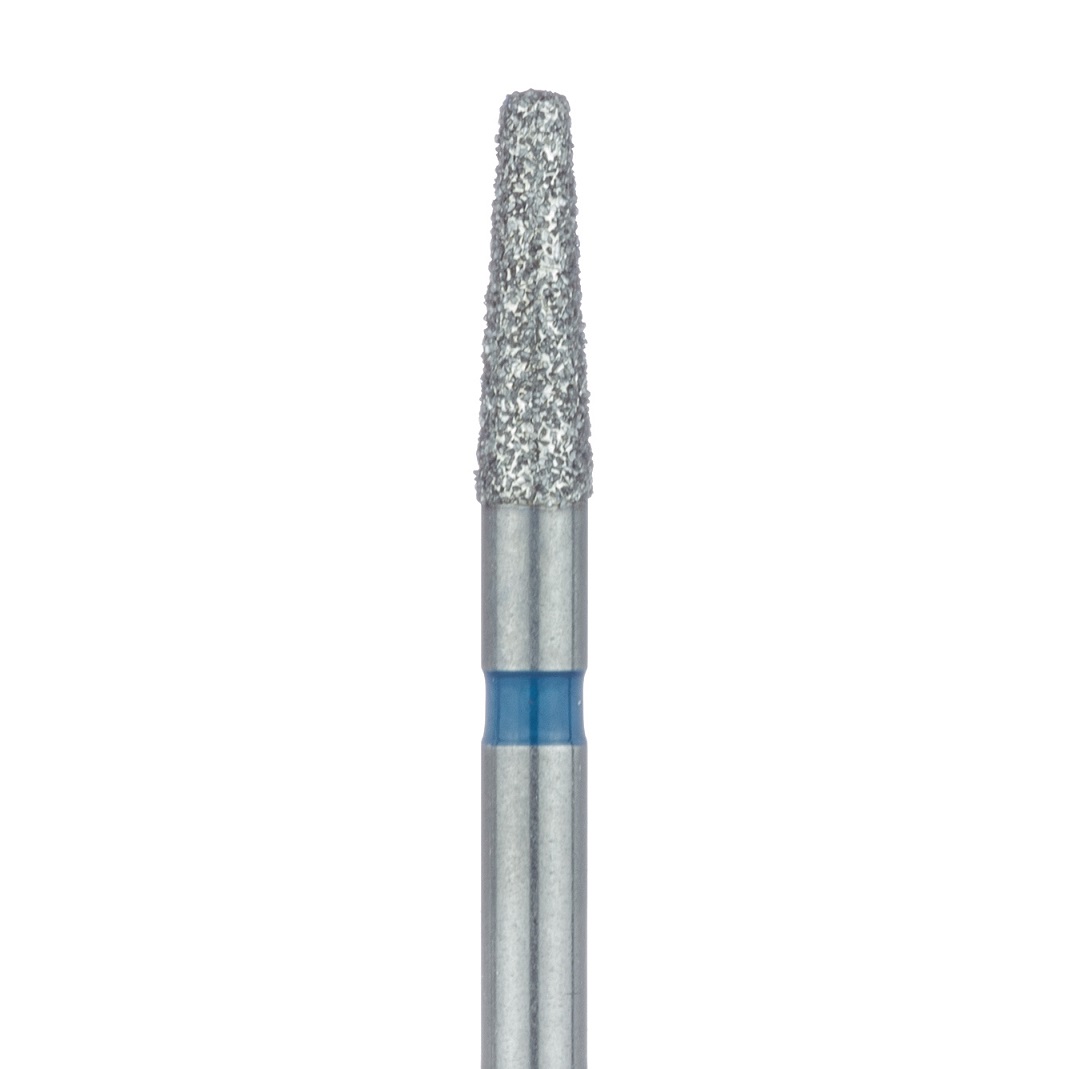 Wiertło z nasypem diamentowym na turbinę, długi stożek ze ściętym i zaokrąglonym wierzchołkiem przeznaczone do opracowania ubytków próchnicowych, szlifowania pod korony/mosty, wkłady i nakłady oraz korekty szlifu. nasyp standardowy (niebieski pasek), rozmiar 018