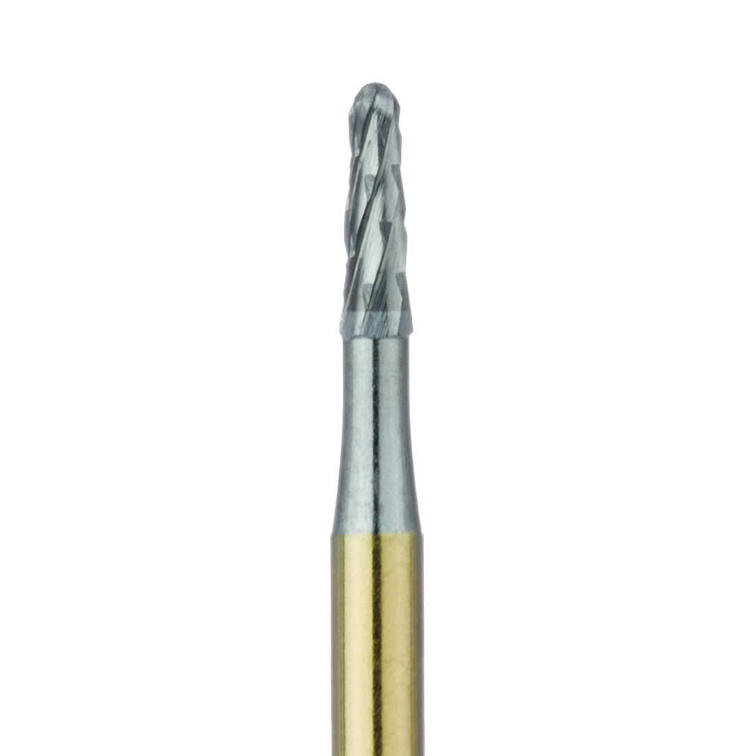 Wiertło z węglika spiekanego na turbinę, mały wąski stożek ze ściętym zaokrąglonym wierzcholkiem przeznaczone do opracowywania powierzchni okluzyjnych i cięcia koron rozmiar 012