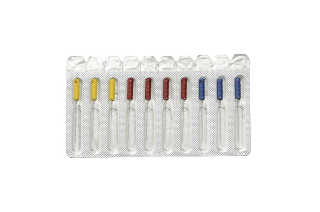 Narzędzia ręczne do usuwania miazgi z kanałów korzeniowych. Wykonane ze stali nierdzewnej. opakowanie: 10 narzędzi w rozmiarze 20 /żółtych, długość 21mm