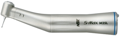 NSK Kątnica M 25 L (zamiennik kątnica 1:1 Jinme) Kątnica z serii S-Max, na mikrosilnik przełożenie 1:1, stalowa z podświetleniem wewnętrzne chłodzenie pojedynczy spray światłowód prętowy na wiertła maszynowe 40 000 obr./min.