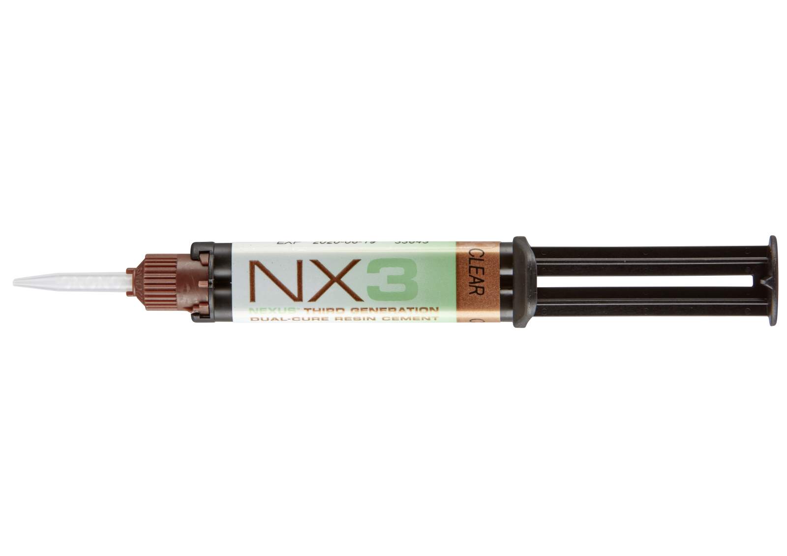 NX3 - uniwersalny, dualnie wiążący cement adhezyjny na bazie żywic. Przeznaczony jest do stałego osadzania wszelkiego rodzaju uzupełnień protetycznych, łącznie z licówkami i mostami adhezyjnymi. Dzięki innowacyjnej budowie chemicznej wykazuje doskonałą adhezję do zębiny, szkliwa, bloczków CAD/CAM, ceramiki, porcelany, kompozytów i metalu. Może być stosowany z systemami łączącymi (np. OptiBond XTR), w technice self-etch lub total-etch. Jest szybki i prosty w użyciu, a żelowa faza ułatwia usunięcie nadmiarów bez zanieczyszczenia uzupełnień. Strzykawkowe opakowanie Automix eliminuje konieczność ręcznego mieszania. Końcówki mieszające zapewniają uzyskanie jednorodnej mieszaniny we właściwych proporcjach. Materiał dostępny jest w 5 odcieniach, przez co umożliwia zachowanie estetyki w jamie ustnej. Zoptymalizowana matryca oraz wolny od amin trzeciorzędowych inicjator reakcji polimeryzacji chemicznej zapewniają długotrwałą stabilność koloru. Wskazania: ostateczne osadzanie wszelkiego rodzaju prac protetycznych takich jak: - korony i mosty, - wkłady i nakłady (inlay/onlay), - licówki, - wkłady koronowo-korzeniowe. uzupełnienie: 1 strzykawka typu Automix 5g, odcień Clear