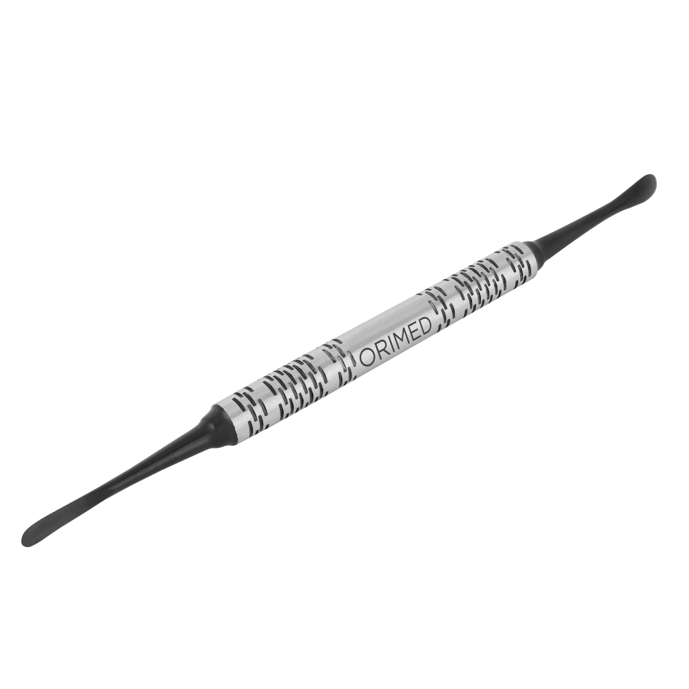 Raspator Freer, dwustronny. Posiada dwie ostre końcówki (szer. 6x4mm). Czarna powłoka ceramiczna całkowicie eliminuje refleks świetlny oraz dodatkowo zabezpiecza stal chirurgiczną.