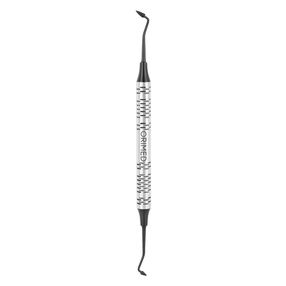 Upychadło stożkowe do modelowania kompozytu, dwustronne. Czarna powłoka ceramiczna całkowicie eliminuje refleks świetlny oraz dodatkowo zabezpiecza stal chirurgiczną.
