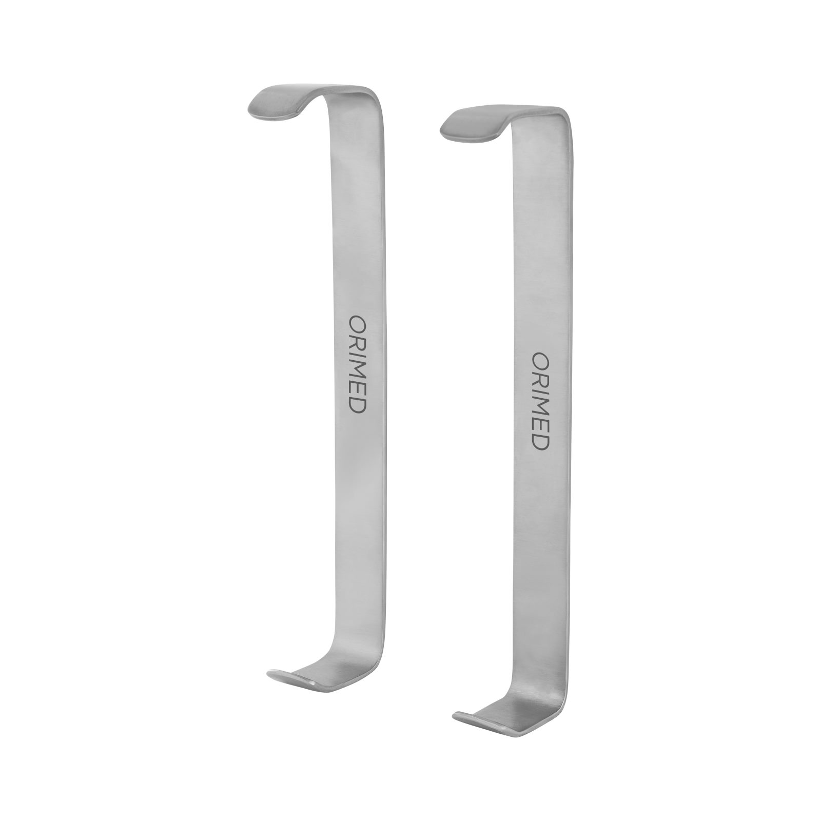 Haki chirurgiczne Farabeuf 15 cm (komplet 2 szt.). Wymiary: 20x16 mm i 24x16 mm oraz 23x16 mm i 28x16 mm.