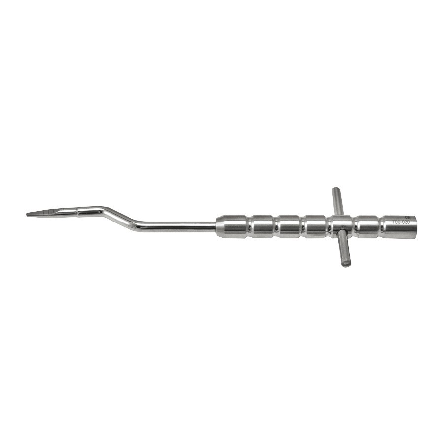 Osteotom płomyk wygięty, bez ogranicznika. Średnica: 4,3 mm. Długość: 15,5 cm.