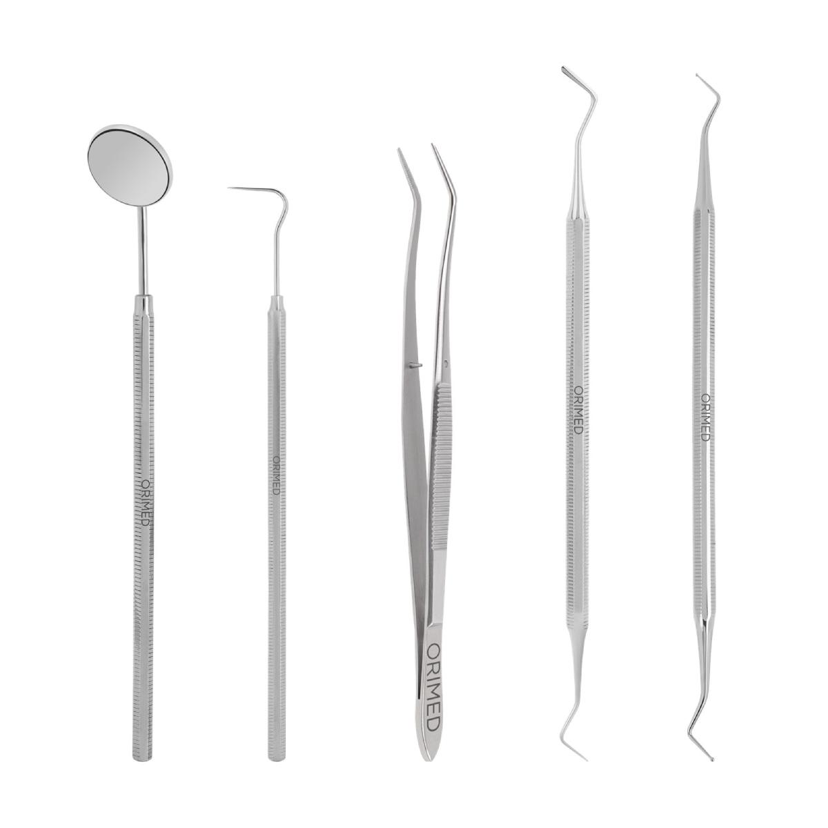 Ori zestaw diagnostyczny nr 3 (lusterko rodowane 22mm zgłębnik prostokątny nakładacz 1,6x1,6 pęseta Meriam upychadło kulkowe małe 0,8x1,0)
