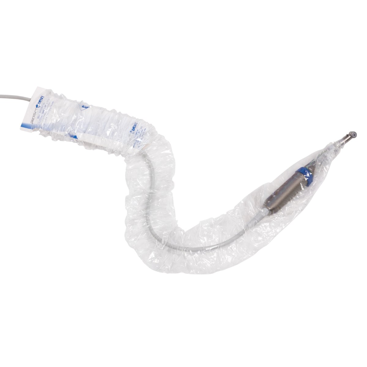 Osłona na przewody końcówki o wymiarach 120 x 8 cm z taśmami samoprzylepnymi . Zestaw :  - gwarantuje jałowość zabiegów w implantologii i chirurgii jamy ustnej, - zapewnia ochronę końcówek i mikrosilników, - posiada zgodność ze wszystkimi normami Unii Europejskiej .