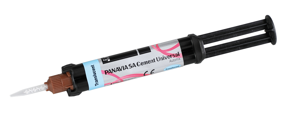 PANAVIA™ SA Universal - podwójnie wiążący cement kompozytowy do jednoetapowego i adhezyjnego mocowania stałych uzupełnień protetycznych. Oferuje trwałą i silną adhezję chemiczną praktycznie do wszystkich materiałów (w tym ceramiki z dwukrzemianu litu i kompozytów na bazie żywic) bez konieczności stosowania primera. Oparty jest o zaawansowaną technologię polimeryzacji zapewniającą szybką reakcję wiązania cementu i trwałą szczelność połączenia. Zawiera wyjątkowe składniki, w tym: - unikalny monomer LCSi tworzący silne wiązanie chemiczne z ceramiką (w tym szklaną na bazie dwukrzemianu litu) i kompozytami na bazie żywic, - oryginalny monomer MDP w wysokim stężeniu, który zapewnia dodatkowo zwiększoną reaktywność chemiczną produktu w stosunku do tlenku cyrkonu, stopów metali oraz zębiny i szkliwa, - 62% pojemności wagowej (40% pojemności objętościowej) cząsteczek nanowypełniaczy. Charakteryzuje się wysoką wytrzymałością na ściskanie (300 MPa) oraz na zginanie (91 MPa), a także elastycznością (4,6 GPa) Wykazuje bardzo niską rozpuszczalność w środowisku wodnym, zapewniając tym samym długotrwałą szczelność. Uwalnia jony fluoru, przez co zapewnia profilaktykę przeciwpróchnicową. Materiał jest bardzo wygodny w użyciu - nie wymaga stosowania primera oraz długotrwałych i wieloetapowych procedur. Można go łatwo i precyzyjnie nakładać cienka warstwą (14µ) bez potrzeby używania specjalnego dozownika, zaś bezpośrednią aplikację do kanałów ułatwiają specjalne końcówki typu endo. Po szybkiej polimeryzacji jego nadmiary można łatwo usunąć bez ryzyka zabrudzenia lub uszkodzenia uzupełnień czy dziąsła. Dodatkowo może być przechowywany poza lodówką w temperaturze pokojowej bez narażenia na utratę swoich właściwości. Bardzo dobrze kontrastuje na zdjęciach Rtg (170% Al), co znacznie ułatwia diagnostykę. W przypadku uzupełnień o ograniczonej retencji i dla zwiększenia siły wiązania, cement stosuje się z Clearfil Universal Bond Quick 2. Pozwala to zwiększyć siłę wiązania oraz eliminuje konieczność użycia Cleafril DC Activator. Cement produkowany jest w trzech odcieniach - uniwersalnym, przeziernym i białym opakerowym. Zapewnia uzyskanie wysokiego efektu estetycznego i kosmetycznego niezależnie od specyficznych sytuacji klinicznych. PANAVIA™ SA Universal jest dostępny w wersji do mieszania automatycznego oraz ręcznego. Wskazania: - osadzanie koron i mostów wykonanych z ceramiki (w tym także z dwukrzemianu litu czy ceramiki szklanej) lub kompozytów na bazie żywic, - osadzanie mostów adhezyjnych, wkładów koronowych typu inlay/onlay, - osadzanie uzupełnień protetycznych na implantach i łącznikach, - cementowanie wkładów koronowo-korzeniowych, opakowanie uzupełniające: Panavia SA Cement Universal Automix, odcień Translucent 1 strzykawka x 8,2g (4.6 ml) + 20 końcówek